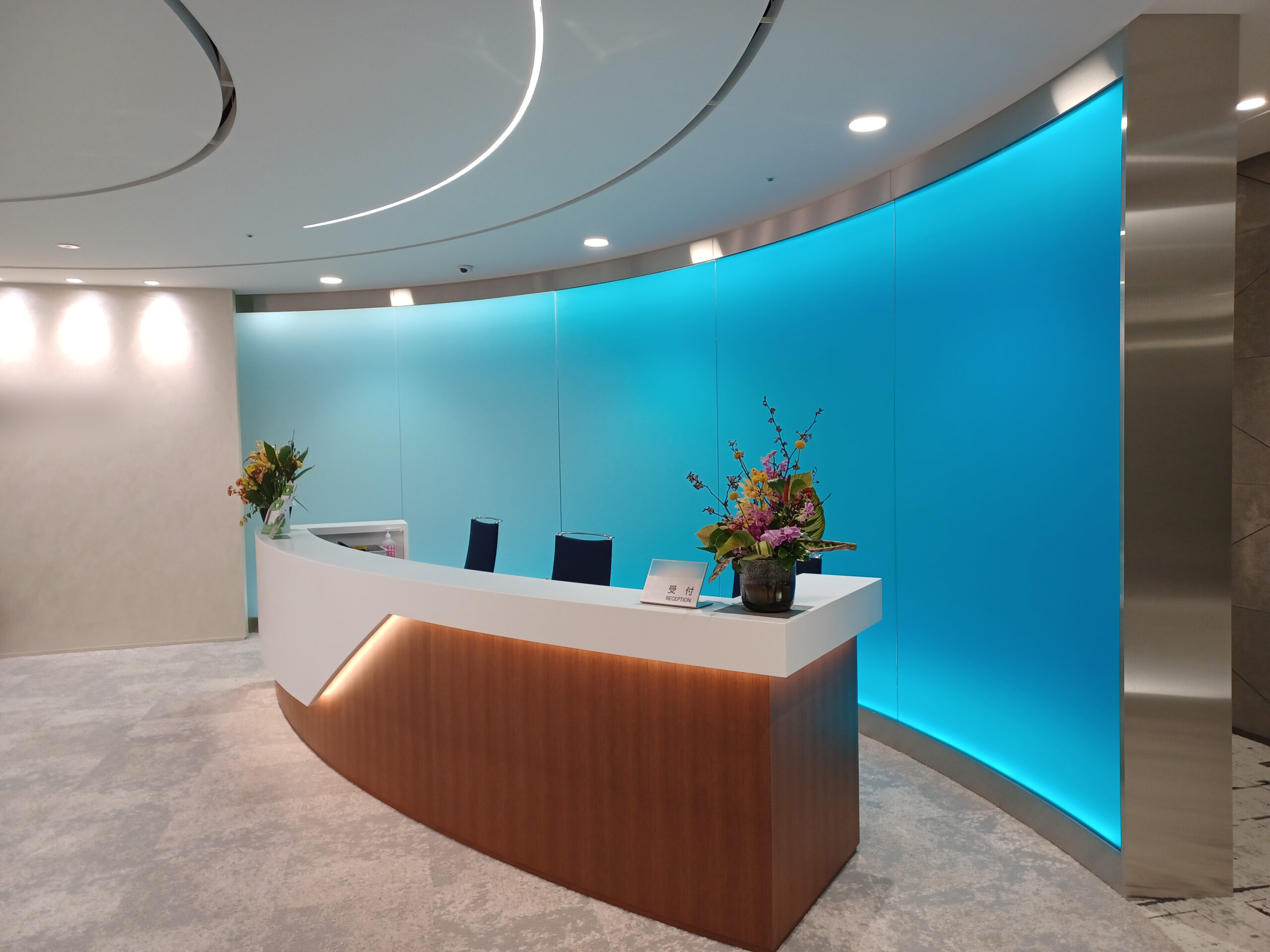 - 洗練された印象を与える受付になり来社されるお客様にも大変評判が良いと聞いています。