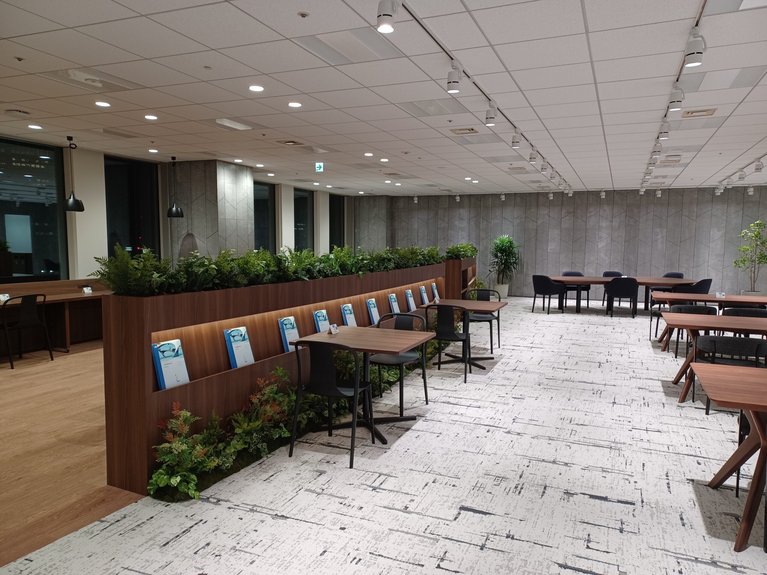 - 今回の改装では、出社する意義を実感できる空間づくりを目指しました。リモートではできない事、それは「会って、話して、つながる」事。そこで、社員が自然と集い、関係を育む『新しい交流が生まれ育つ場』というコンセプトを打ち出しました。